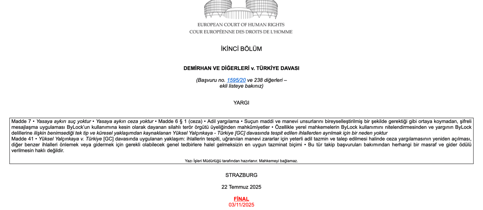 22 Temmuz 2025’te verilen Demirhan ve Diğerleri v. Türkiye kararı, sadece 239 başvurucu için değil, Türkiye’de son